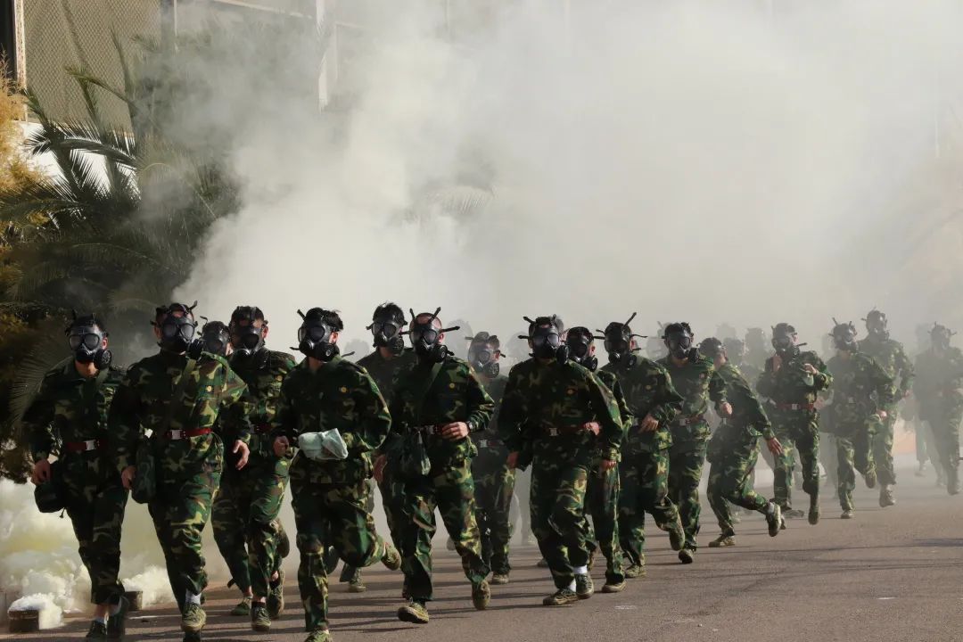 本次军训以行军拉练科目拉开序幕,拉练中设置了模拟实战场景的防生化和防空袭演练科目,通过近5公里的拉练磨砺学生意志,强化安全意识,提高战场生存能力。