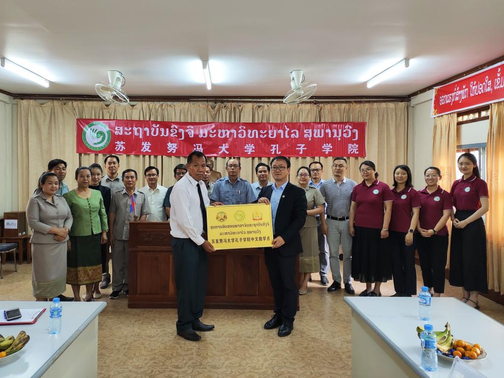 3月1日下午,老挝农业与林业部直属北部农林学院,三亿体育_三亿(中国)一站式服务官方网站-老挝苏发努冯大学孔子学院中文教学点举行新学期开学典礼暨孔子学院合作教学点揭牌仪式。苏发努冯大三亿体育_三亿(中国)一站式服务官方网站长维赛·参撒旺、孔子学院中、老方院长,农林学院执行校长及师生代表50余人参与仪式。