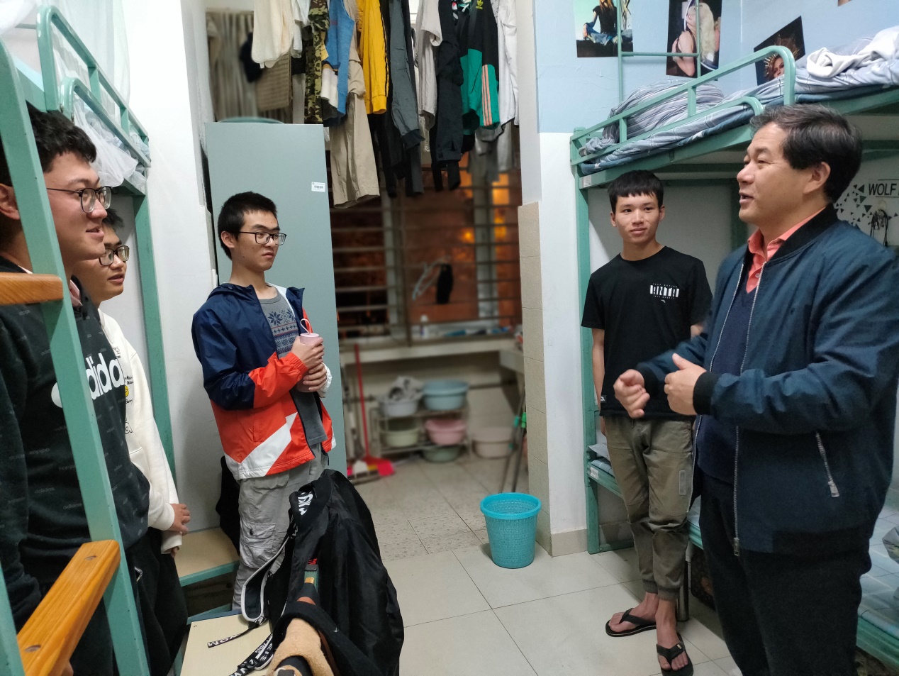 3月26日晚,校党委副书记、校长王华到呈贡校区憬园学生公寓走访看望学生,检查指导学生社区管理服务工作。