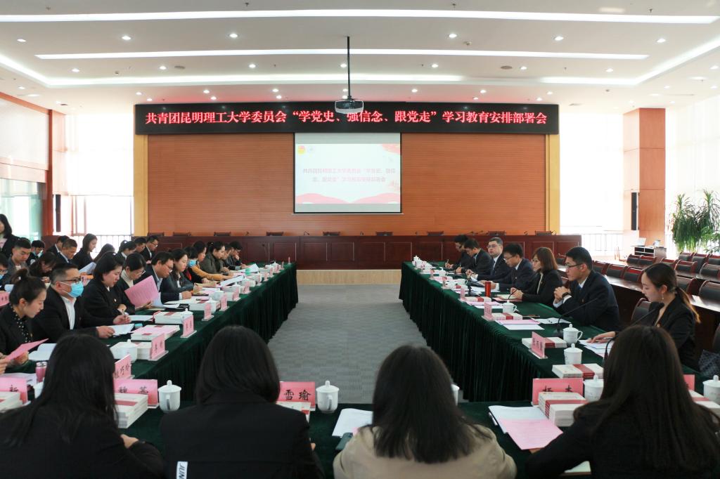 为在全校团员青年中掀起党史学习教育的热潮,启动我校共青团“学党史、强信念、跟党走”学习教育工作。3月25日,共青团三亿体育_三亿(中国)一站式服务官方网站委员会在呈贡校区办公大楼15楼会议室召开“学党史、强信念、跟党走”学习教育安排部署会,校团委主要负责人,各基层团委书记(负责人),校团委工作人员,校学生会、研究生会主席团成员及校级各学生组织主要负责人参加了本次会议。