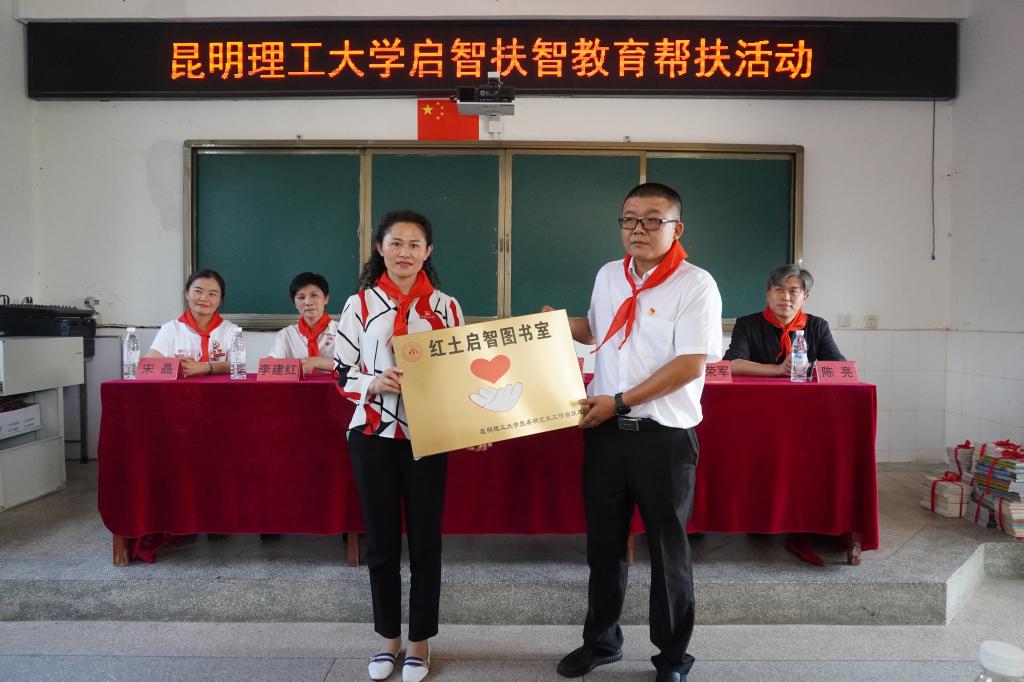 西庄镇中心小学党支部书记郭建安对此次启智帮扶及“红土启智图书室”援建活动表示感谢。研工部负责人勉励同学们多读书、读好书,通过书籍丰富自己的课外知识,成为德智体美劳全面发展的中国好少年。仪式上,研工部负责人向西庄镇中心小学党支部书记移交了“红土启智图书室”牌匾,并为图书室捐赠首批300余册课外读物。