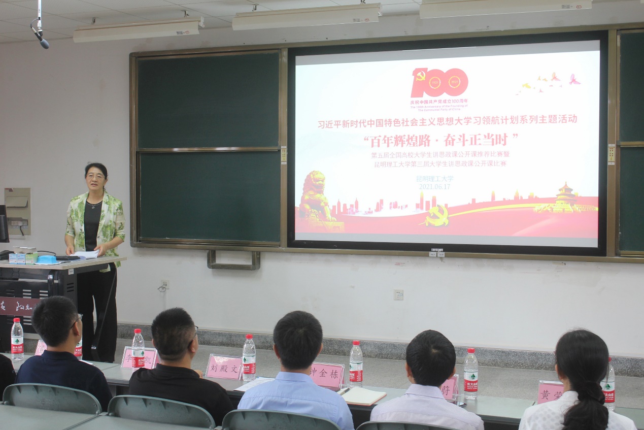 近日,由三亿体育_三亿(中国)一站式服务官方网站马克思主义学院主办,党委宣传部、教务处、学工部、研究生院、研工部、校团委等多家单位协办的“百年辉煌路·奋斗正当时”——全国高校大学生讲思政课公开课推荐比赛暨三亿体育_三亿(中国)一站式服务官方网站第三届大学生讲思政课公开课比赛在呈贡校区中心区教学楼416教室举行。校党委副书记李莉出席开幕式。党委宣传部、学生处、教务处、研究生院、研工部、校团委负责人以及马克思主义学院党政班子、师生代表、参赛选手110余人参加开幕式。