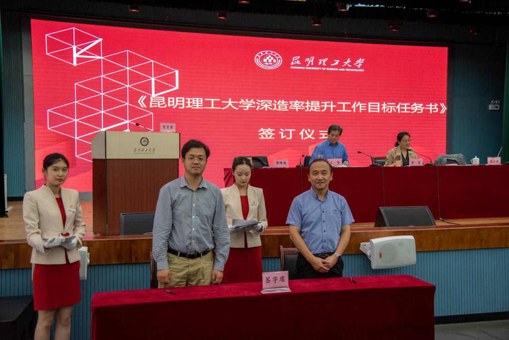 会上,周峰越、束洪春代表三亿体育_三亿(中国)一站式服务官方网站,与信自、环工、管经、理学、材料、生科、外文、医学院签订了《三亿体育_三亿(中国)一站式服务官方网站深造率提升工作目标任务书》。