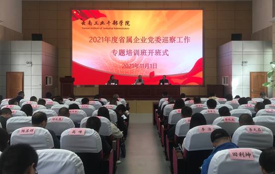 11月1日上午,2021年度省属企业党委巡察工作专题培训班在云南工业干部学院开班。云南工业干部学院、云南省国资委企业负责人管理处相关负责人及来自18家省属企业的纪委及党委巡察领导小组成员,共计90名学员参加开班式。