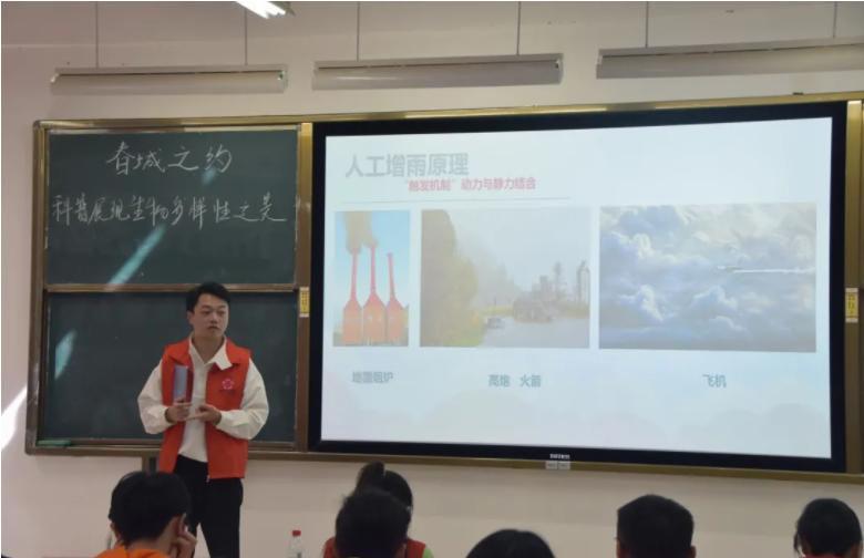 云南天气预报主持人、云南发布《主播说天气》主持人何雨阳以“听雨湖的奥秘”为题,结合人工增雨和人工防雹的科普知识,为大家解释什么是“声震效应”。博硕宣讲团骨干宣讲人李响、吕高琪、王海风分别围绕“COP15的重要意义”“走进世界的天堂-探索普洱生物多样性”“生态文明:共建地球生命共同体”三个主题向研究生进行科普宣讲。
