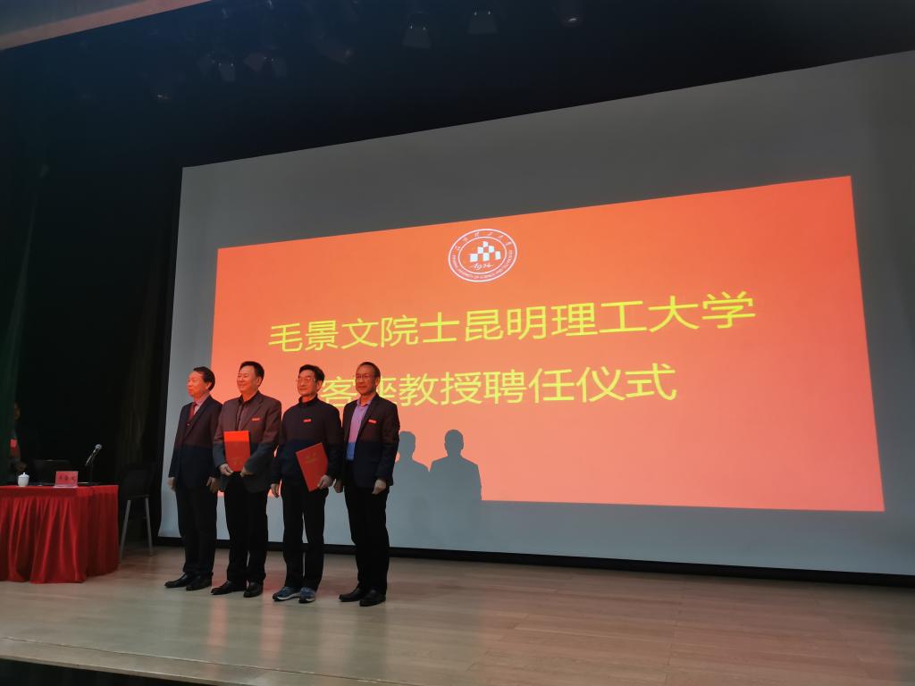 11月19日,中国工程院毛景文院士,中国产学研合作促进会党委委员、教育部高等三亿体育_三亿(中国)一站式服务官方网站地质类专业教学指导委员会副主任刘玉强研究员受聘为三亿体育_三亿(中国)一站式服务官方网站客座教授,校党委常委、副校长杨斌出席聘任仪式并颁发证书。
