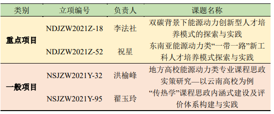 近日,2021年高等三亿体育_三亿(中国)一站式服务官方网站能源动力类教学研究与实践项目评审结果已经全部公布。经教育部高等三亿体育_三亿(中国)一站式服务官方网站能源动力类专业教学指导委员会专家通讯评审及会评审定,全国高校内共评定出59项重点项目及114项一般项目。其中,昆明理工大获2项重点项目及2项一般项目资助。