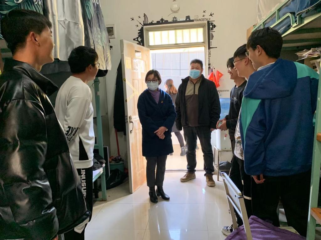 2022年春季学期开学初,校党委书记张英杰深入基层调研,检查走访了学工部、学生社区中心、研工部、教务处、保卫处等部门,督促指导学期初疫情防控、学生管理、教务教学和安全稳定有关工作。