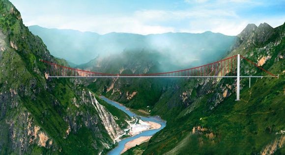 绿汁江大桥为玉楚高速重点控制工程,所在场地复杂、山高谷陡,桥面离谷底300多米,建设难度大,采用的技术复杂。该桥桥型为云南首创,是世界最大跨度的地锚式独塔悬索桥。