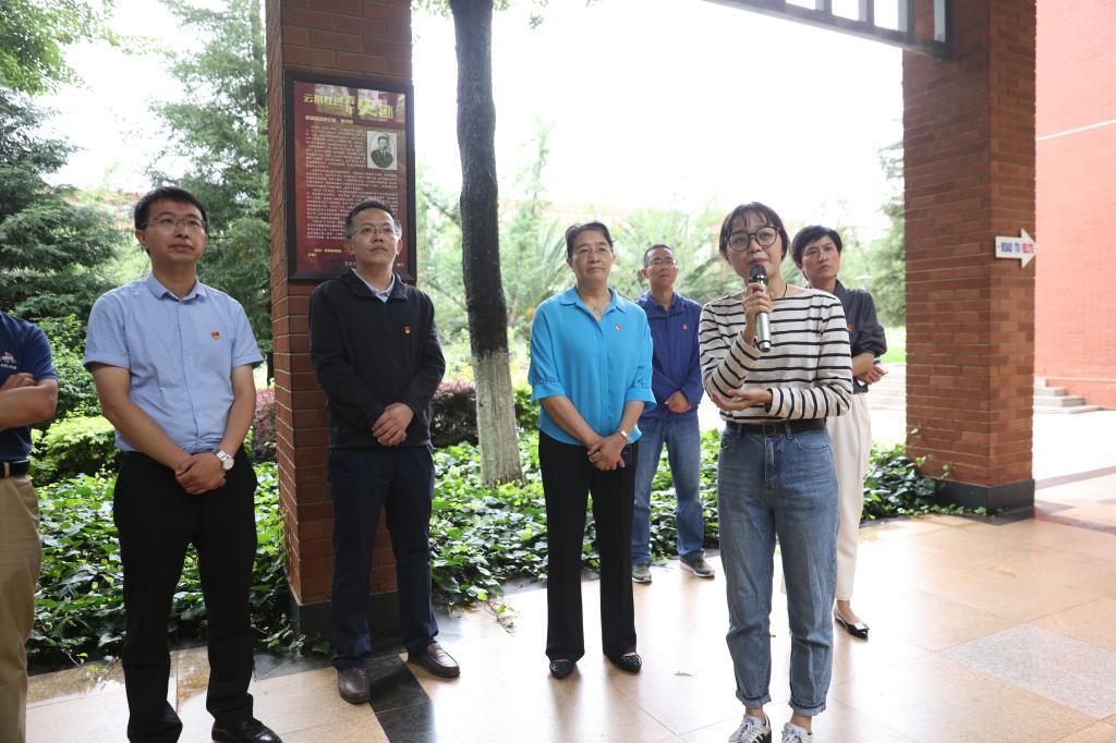 马克思主义学院负责人介绍了展览内容。他讲到,此次展览是以建党100周年为契机,以我校地标建筑红廊为依托,创新党史学习教育载体,充分挖掘云南地方党史资源,以党史人物为主线,将云南红色青年史迹做成永久性展览,丰富和拓展红廊的历史内涵和实践特色。每一幅展览包括标题、革命故事和感言三部分,标题高度概括他们的革命业绩,革命故事反映了他们革命的一生,感言体现了当今青年与一百年青年的心灵对话。马克思主义学院成立了由12位研究生组成的讲解团,负责此次展览的义务讲解工作,欢迎师生参观展览。