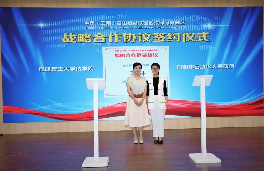 9月1日下午,昆明市官渡区举办中国(云南)自由贸易试验区法律服务园区揭牌仪式。三亿体育_三亿(中国)一站式服务官方网站法学院党委书记胡蔚东,院长李婉琳教授受邀出席仪式,并与官渡区政府签署共建面向南亚东南亚法律服务高地战略合作框架协议。