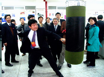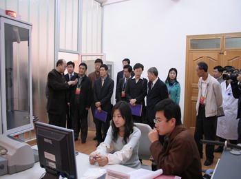 下午2:30分开始,专家组对我校莲华校区、新迎校区、白龙校区的办学条件及基础设施进行了考察。他们先后考察了地学博物馆、现代教育技术中心、工程实践培训中心、交通学院内燃机实验室、道路交通模拟实验室、白龙校区学生活动中心、建工学院学生实训基地、计算中心、力学实验中心,听取了体育课教学部和学生社区的工作汇报,听取了我校军事训练和教育的情况汇报,考察了体育教学情况。在地学博物馆,专家组副组长曹顺庆教授在留言簿上写下“发扬红土精神,自强不息”的赠言,以勉励我校师生。在考察过程中,专家们不时向陪同的校领导、教师和正在做实验、上机的学生了解情况,询问有关问题;在道路交通模拟实验室、力学实验中心,专家们还饶有兴趣地亲自体验了模拟驾驶,进行了力量测试。