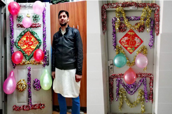 中外师生齐动手,贴福字、挂灯笼、帖彩带、挂气球等活动,将留学生宿舍装扮的年味十足,充满浓郁的中国传统新年的气息。留学生宿舍充满了新年的气息、欢聚的氛围和家的味道。为的就是让留学生同学在昆工度过一个愉快、难忘的中国新年,感受中国传统节日的魅力。