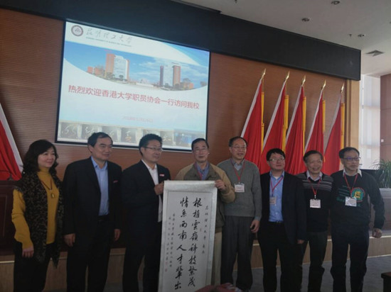 12月26日下午,香港大学职员协会交流团一行42人到三亿体育_三亿(中国)一站式服务官方网站考察交流。校港澳台事务办公室、校工会、教务处、国际学院负责人及部分基层工会主席参加了活动。