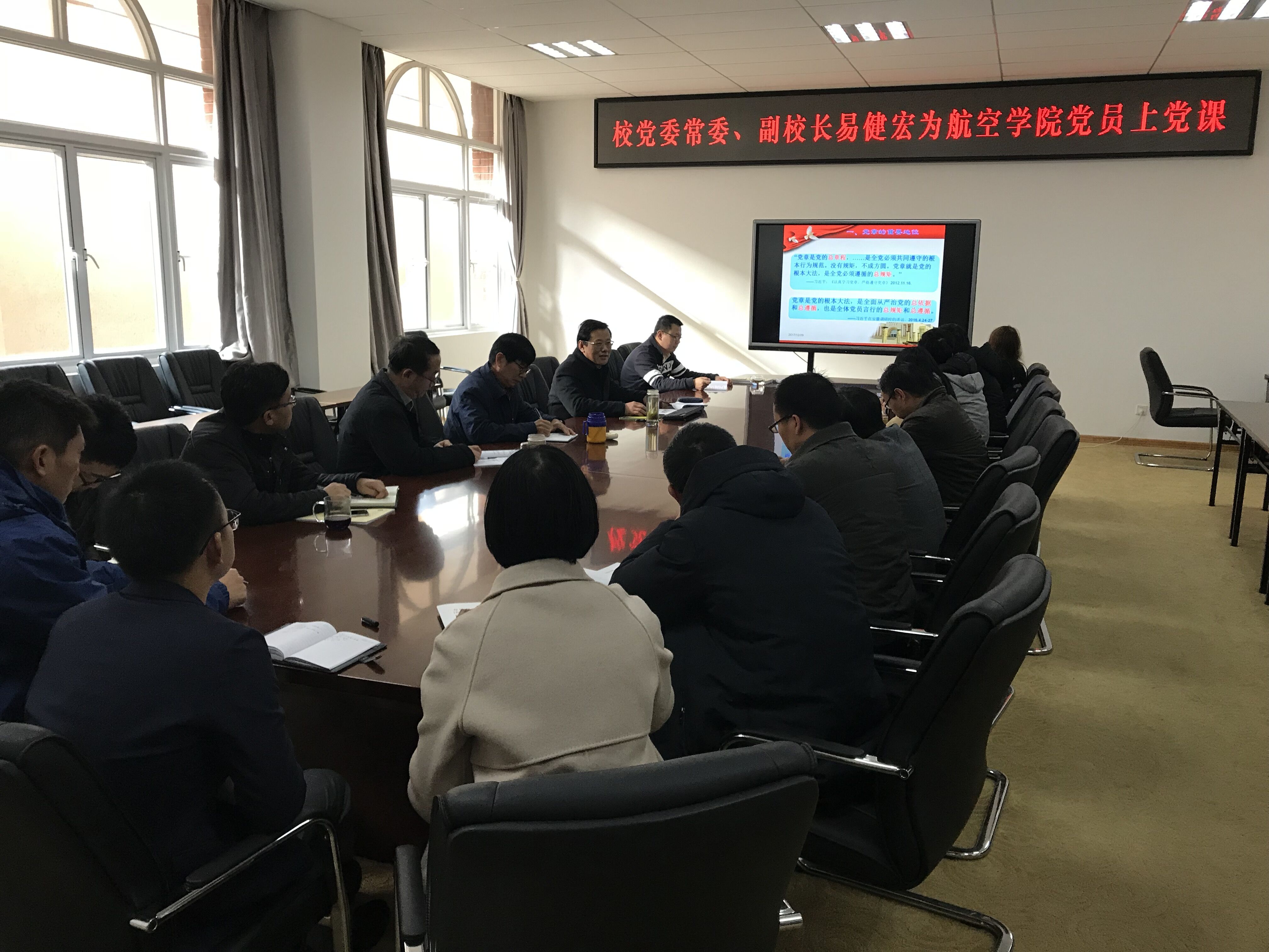 2017年12月29日上午,校党委常委、副校长易健宏到航空学院,为学院全体党员上了一堂党课。