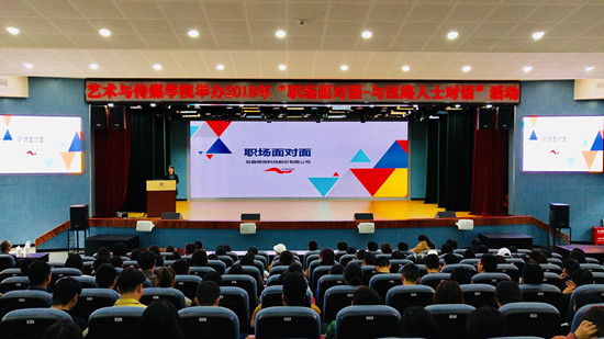 2018年11月8日下午,由艺术与传媒学院主办的“职场面对面-与丝路人士对话”主题活动在昆工小剧场顺利举行,本次活动邀请到深圳丝路数字视觉有限公司副总裁胡晶华、集团人力资源总监王杰、南京T3公司总经理王江波、深圳公司副总经理赵洋,艺术与传媒学院副院长张建国主持,2016级280名同学参加了此次活动。