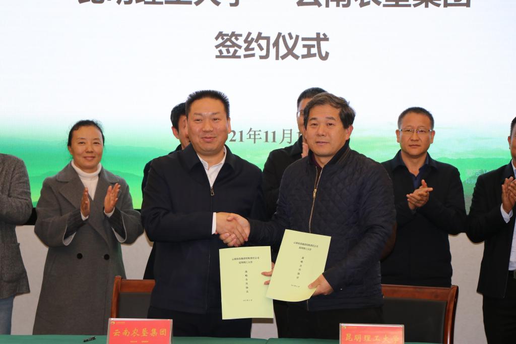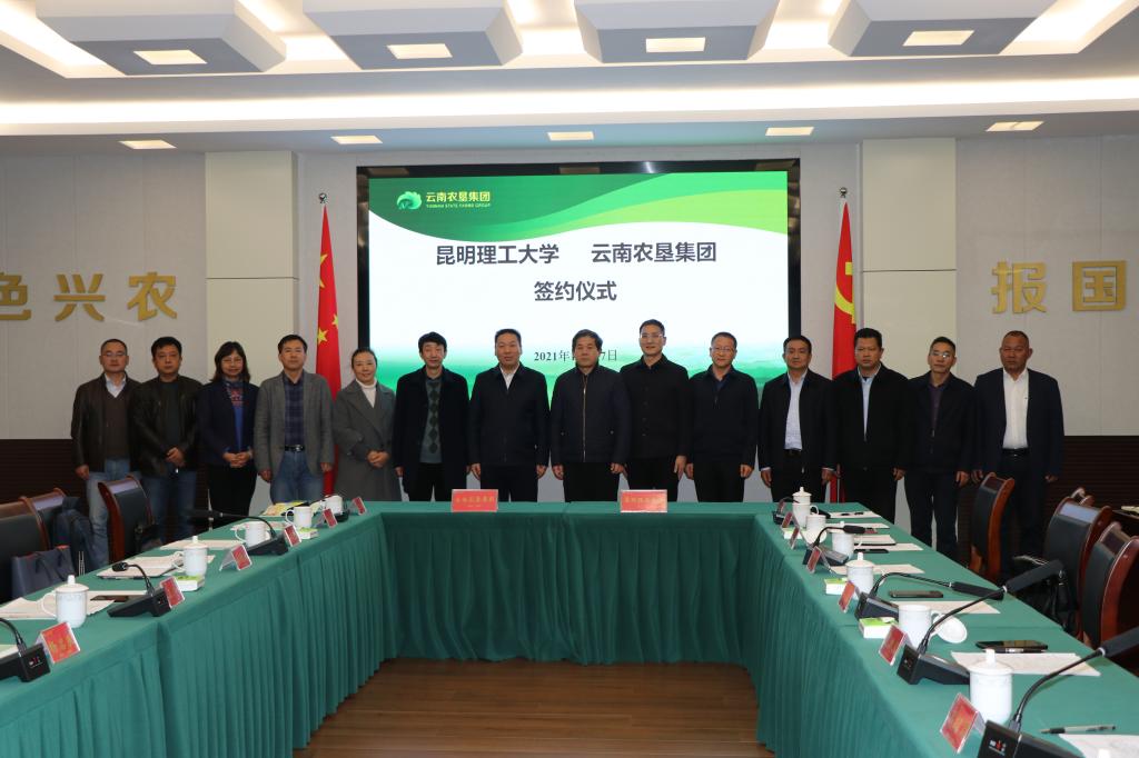 11月17日下午,三亿体育_三亿(中国)一站式服务官方网站与云南农垦集团战略合作协议签约仪式在云南农垦集团举行。三亿体育_三亿(中国)一站式服务官方网站党委副书记、校长王华,云南农垦集团党委书记、董事长陈祖军,党委副书记、总经理、副董事长周建国,党委副书记、工会主席陈云忠,副总经理高绍周出席签约仪式。云南农垦集团相关部门及分公司负责人,三亿体育_三亿(中国)一站式服务官方网站校办、科技院、资产公司、农工学院、食品学院、马克思主义学院负责人参加签约仪式。