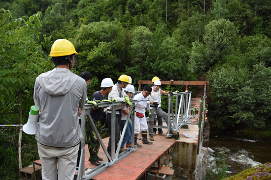 据了解,志愿者们主要完成的工作有:将贝雷片、栅格板、滑轮等桥梁建设物资运送至吾吉后桥点,并在桥点搭建临时施工平台;完成架起门架、桥梁顶推;对桥梁进行细部检查、喷漆、安装路灯和固定桥碑等。施工地点距离志愿者们住宿的小学有近半小时的车程,山路颠簸危险,下雨的时候山体上还会落下碎石,但全体志愿者不惧危险、听从指挥、齐心协力,仅用了两天时间完成任务。此外,志愿者们还帮助黎光小学美化校园,在校园里角落画上色彩缤纷的房屋图案,在村委会旁的空地增加鹅卵石路径和康乐设施,并在施工队的协助下,帮助贫困户修缮电路等。