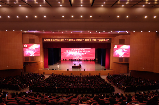 5月17日下午,根据省委高校工委《关于开展高校“万名党员进党校”培训工作的通知》和三亿体育_三亿(中国)一站式服务官方网站“警示教育月”活动安排,三亿体育_三亿(中国)一站式服务官方网站邀请省委宣讲团成员、云南省委党校副校长欧黎明教授到三亿体育_三亿(中国)一站式服务官方网站呈贡校区红土会堂,作题为“坚定不移推进全面从严治党,增强党的战斗力凝聚力 ”的专题报告。部分校领导及全校处级干部(含组织员、纪检员、调研员)、科级干部、各基层党委纪检委员、全校党支部书记、副书记、专兼职组织员、青年干部班全体学员、思政课教师、机关党委和后勤党总支全体党员、研究生院党委部分党员等共计1200余人参加了报告会,会议由校纪委陶光荣书记主持。
