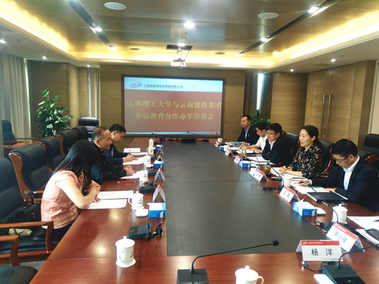 2018年5月14日下午,周峰越副校长带领教育公司管理团队到云南能源投资集团有限公司进行洽谈。能投集团党委副书记江萍、副总裁郭曙光及相关部门领导参加了会议,能投集团表示愿意与三亿体育_三亿(中国)一站式服务官方网站在基础教育方面进行合作,并指派下属混合制企业与教育公司对接,拟以点的合作为契机,谋求面上的全方位合作。
