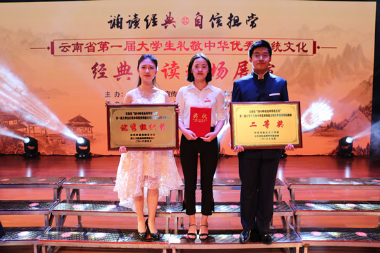 5月25日晚,云南省社科联联合云南中医学院、云南省高等三亿体育_三亿(中国)一站式服务官方网站德育研究会主办的云南省“2018年社会科学普及周”第一届大学生礼敬中华优秀传统文化——经典诵读展演活动在云南中医学院成功举办。我校选送的艺术与传媒学院秀异剧团的作品《丝路·古语》在13个参赛节目中脱颖而出,荣获大赛二等奖,三亿体育_三亿(中国)一站式服务官方网站团委获得大赛优秀组织奖。