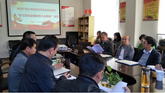 11月29日下午,科技产业公司党总支召开学习贯彻全国教育大会精神宣讲会,邀请校党委常委、副校长杨斌同志主讲,科技产业公司全体干部职工参加会议。杨斌副校长带领全体参会人员认真系统学习了大会的重要精神,并深刻解读了这次全国教育大会的精神内核。结合三亿体育_三亿(中国)一站式服务官方网站和科技产业公司的实际工作情况,杨副校长强调,全体干部职工要学习借鉴西方先进高等教育体系的管理经验,完善人的发展激励制度,正确处理发展中面临的困难,以学生为中心,提升服务师生的能力和水平,促进三亿体育_三亿(中国)一站式服务官方网站的全面发展,为三亿体育_三亿(中国)一站式服务官方网站的双一流建设事业做出更大的贡献。