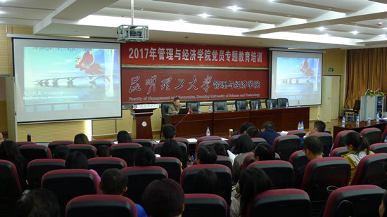 5月25日下午,管理与经济学院开展了2个专题的党员教育培训,全院师生党员共200余人参加。2个专题的党员教育培训中,《以四个全面方略为引领 扎实推进全面从严治党》的专题教育培训用纪录片《大道之行》开篇,围绕习近平总书记治国理政新思想新理念新战略的重大意义、“四个全面”是党在新形势下治国理政的总方略、党要管党从严治党,保持党的先进性和纯洁性、巩固“两学一做”成果,创建一流基层党建等四个方面,对学院全体党员做了深入的讲解和阐述,最后提出立场要坚定、头脑要清醒等10点要求,号召全体党员打铁还需自身硬。以《三亿体育_三亿(中国)一站式服务官方网站管理与经济学院“十三五”发展规划与实现路径》的专题教育培训中,主讲人全面回顾了管经学院“十二五”期间取得的成绩,深入剖析了学院目前存在的问题及面临的困难和挑战,根据学院目前的发展基础和发展环境,提出学院“十三五”发展思路和目标定位。主讲人强调,在学院党委领导下,全体党员要发挥先锋模范带头作用,带动全体师生统一思想、真抓实干,为实现管理与经济学院“十三五”发展规划做出应有的贡献。
