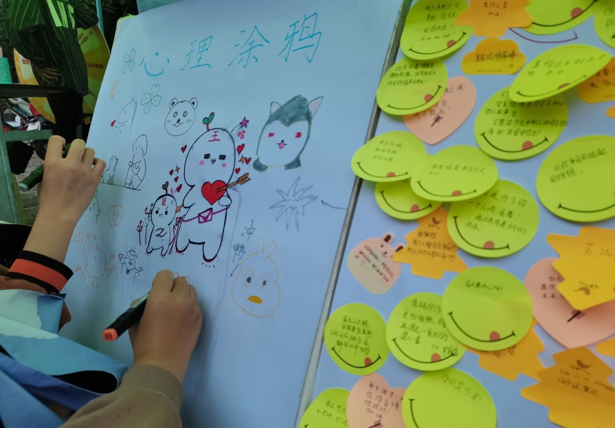 心里悄悄话:给“心理感冒者”写下鼓励的、祝福的寄语,引导同学们关爱自我、关心他人,提高对心理疾病的接受程度,学会换位思考;一句句暖心的话语、一张张五彩斑斓的便签,使现场氛围充满了温馨与感动,也给活动增添了一笔亮丽的色彩。