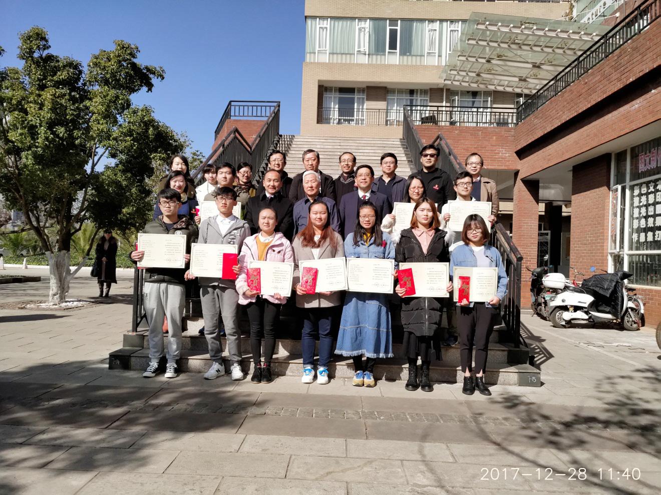 建筑与城市规划学院院长翟辉教授宣读了“关于表彰2017年度第四届朱良文奖助学金获奖人员的决定”,敖丽婵、赵万丽、杨艳芬、田菲菲、李旱雨、李艳萍、姚丽蓉7名同学获朱良文学习勤奋奖学金,房玺智、李涧盈、陈仁全3名同学获朱良文助学金。