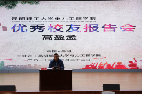 高盈孟校友现任云南金沙江中游水电开发有限公司总经理、党组成员,同时担任云南华电怒江水电开发有限公司总经理、党组成员。报告中,高盈孟校友结合了自身的工作经历,向我们阐述了澜沧江和金沙江水电开发的过程以及问题,表明了现如今水电行业的发展前景。同时,他还鼓励我们大学生应该在大学期间努力增长知识,掌握技能,提升经验,将来为我国电力系统贡献自己的才干和力量。
