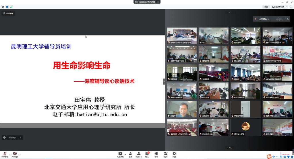 本次培训邀请到北京交通大学应用心理学研究所所长,中国心理学会临床与咨询心理学注册系统注册督导师田宝伟教授作为主讲人,培训主题为“用生命影响生命--深度辅导谈心谈话技术”。