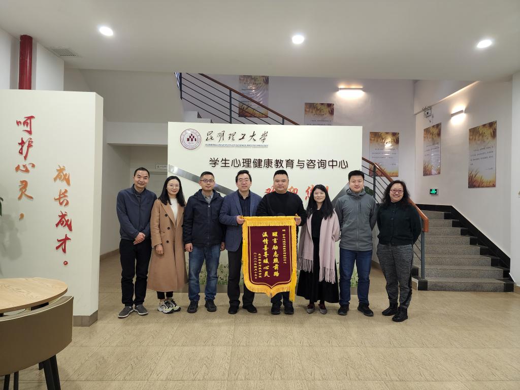 4月19日上午,学生心理健康教育与咨询中心上演温馨一幕。生命科学与技术学院师生代表为心理中心送来一面印有“醒言励志照前路,温情善导暖心灵”字样的锦旗,为心理中心对学院学生心理健康教育工作提供的帮助表示由衷的感谢,代表所有曾经受到心理中心贴心关怀的生科学子表达感激之情。