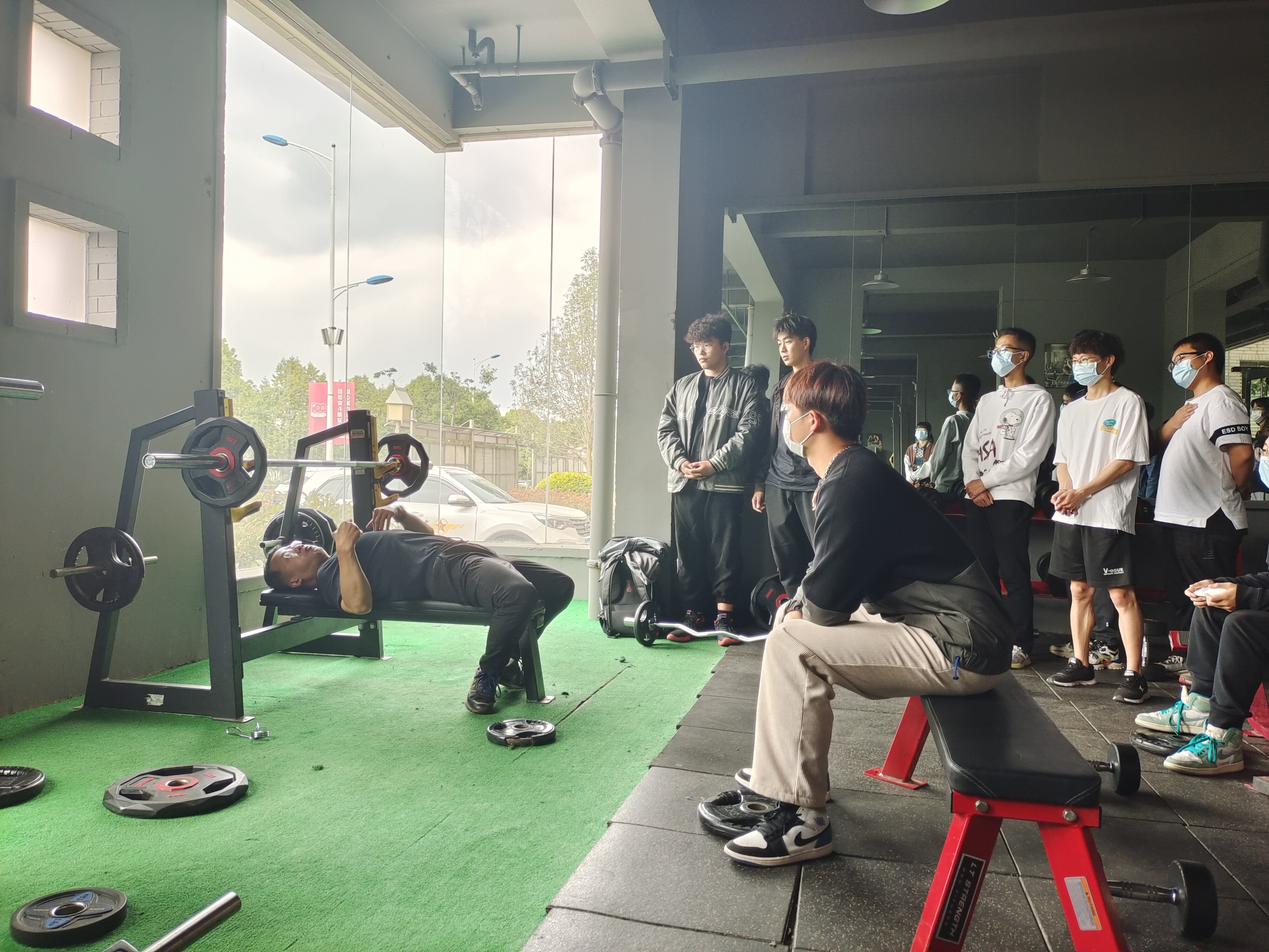 健身指导课程中,专业老师进行了理论知识讲解,让同学们知晓健身的益处以及健身期间的饮食习惯。随后,老师指导同学们进行卧推等实操训练,同学们热情投入,积极参与。