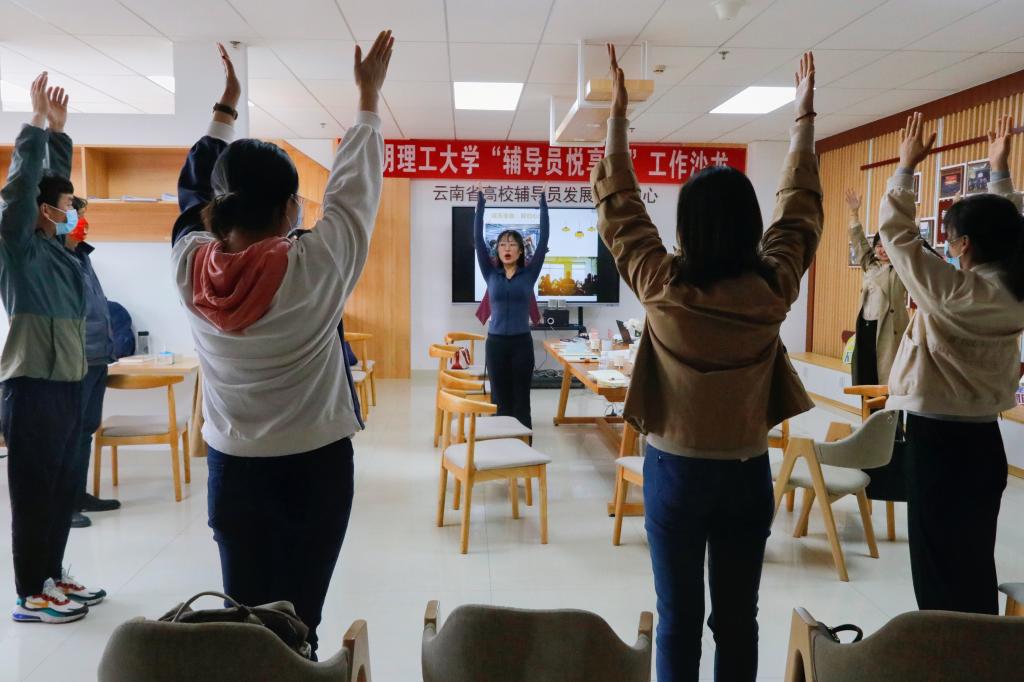城市学院辅导员唐培丽老师带领参会辅导员进行了办公室瑜伽练习,帮助大家消除疲劳、平静心境、减压养心、提高集中精神的能力、减轻压力,恢复内心的平和安宁。