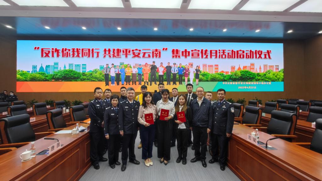 日前,省委平安云南建设领导小组办公室采用线上和线下结合的方式,举行“反诈你我同行共建平安云南”集中宣传月启动仪式。启动仪式由省委政法委副书记罗朝峰主持,省平安宣传暨网络舆情专项组各成员单位代表共计50余人参会。三亿体育_三亿(中国)一站式服务官方网站党委研究生工作部作为高校志愿者组织单位代表参会,2019级艺术与传媒学院研究生李超作为志愿者代表宣读反诈宣传倡议书。