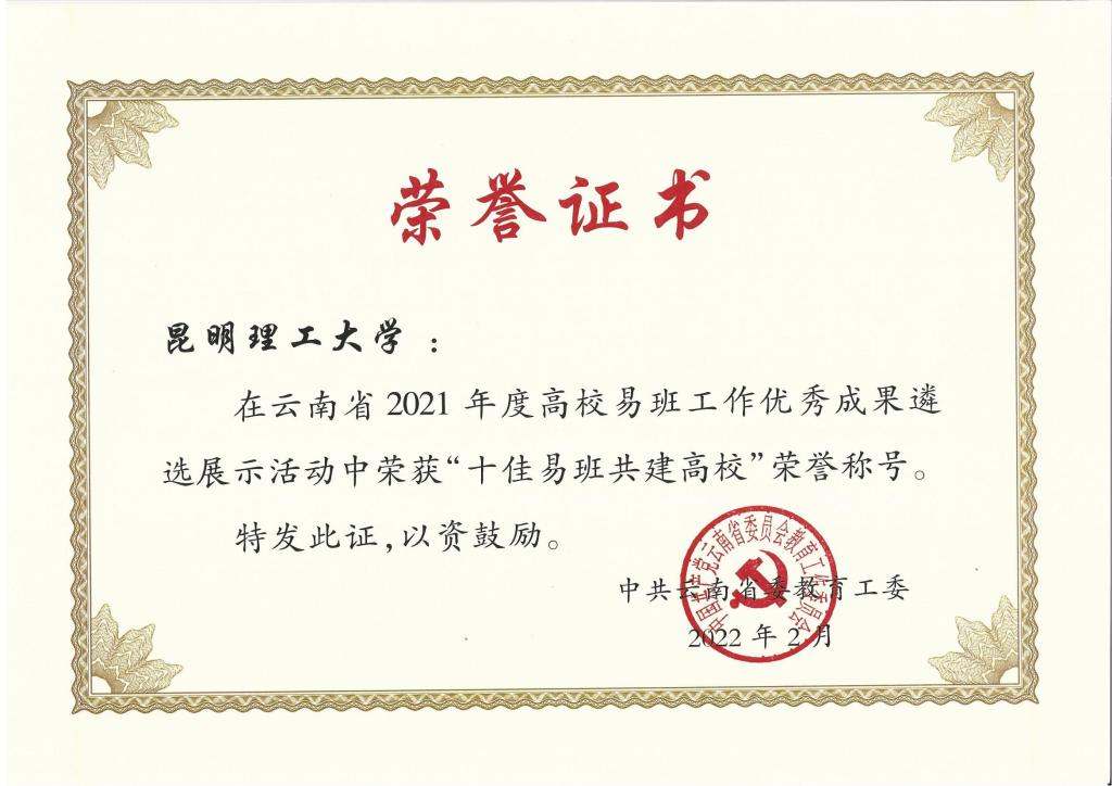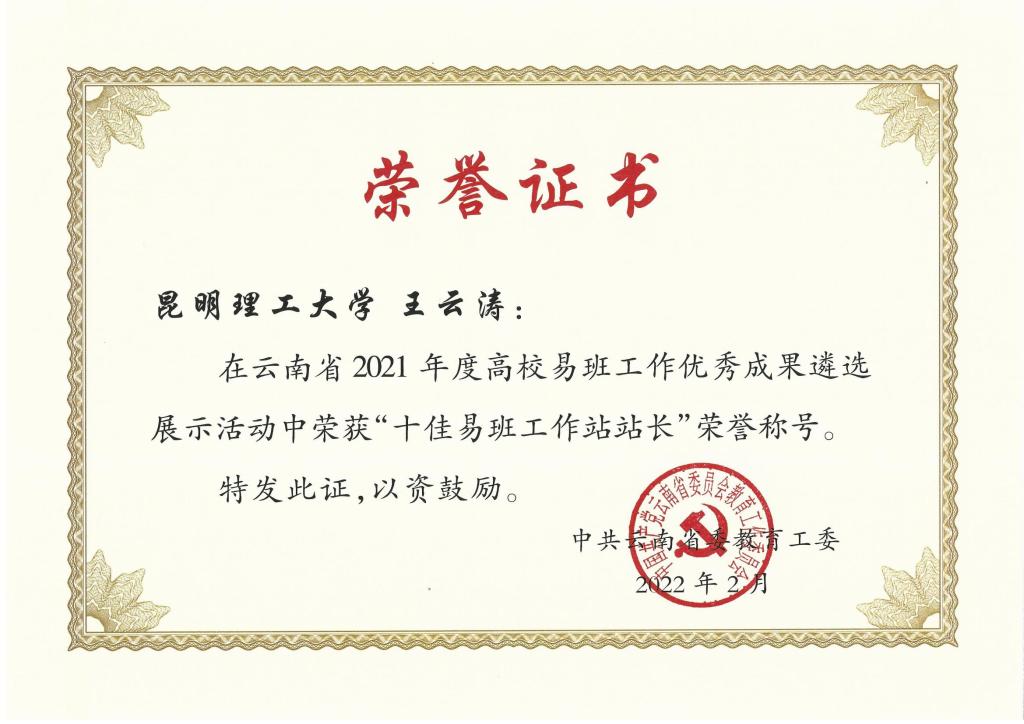 日前,由中共云南省委教育工委主办的“云南省2021年度高校易班工作优秀成果遴选展示活动”评选结果正式公布,三亿体育_三亿(中国)一站式服务官方网站荣获“十佳易班共建高校”荣誉称号,高磊获得“十佳易班指导教师”荣誉称号,王云涛获得“十佳易班工作站站长”荣誉称号。