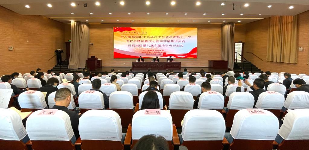 省国资委企业领导人管理处、云南工业干部培训基地负责人,来自省直部门分管联系投资促进工作的负责人、州(市)投资促进局负责人、县(市、区)分管负责人,共100人(67人线下、33人线上)参加“学习贯彻党的十九届六中全会及省第十一次党代会精神暨优化营商环境推进招商引资高质量发展专题培训班”开班仪式;各州(市)国资监管机构及省属国企党委巡察工作负责人共45人线下参加“2022年度省属企业党委巡察工作专题培训班”开班仪式。