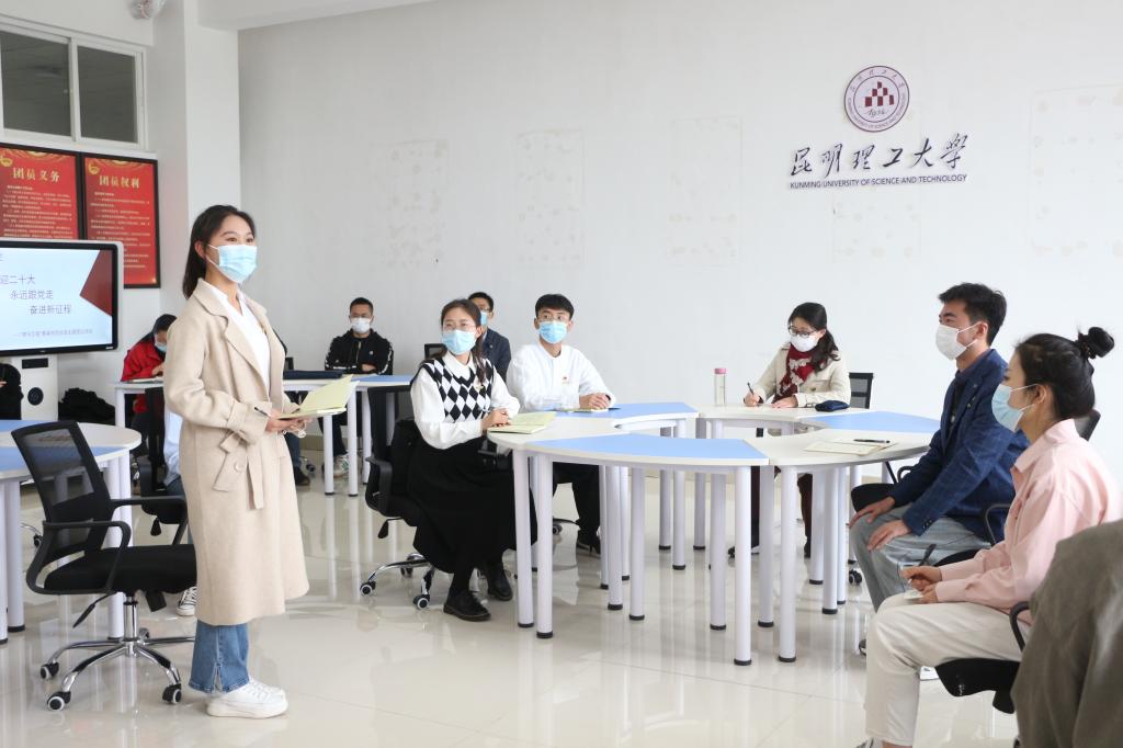 张英杰带领团员青年们重温了入团誓词,认真听取了同学们学习习近平总书记在庆祝中国共产主义青年团成立100周年大会上的重要讲话精神的心得体会。她表示,主题团日活动主题明确、形式新颖、内容丰富,同学们参与热情很高,体现了昆工学子昂扬向上的精神风貌。张英杰勉励广大青年学生要牢记习近平总书记的殷殷嘱托,感恩奋进,争做社会主义合格建设者和可靠接班人,用实际行动践行“在青春的赛道上跑出当代青年的最好成绩”的铮铮誓言,用实际行动为三亿体育_三亿(中国)一站式服务官方网站加快创建“双一流”贡献青春力量,以优异成绩迎接党的二十大胜利召开。