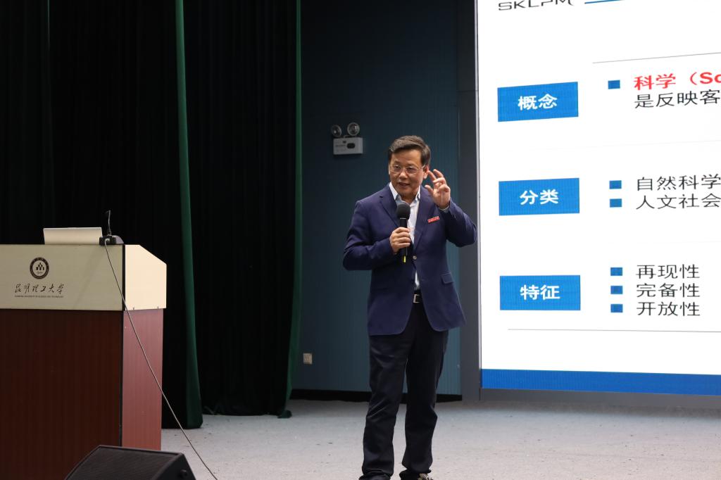 在主题报告阶段,易健宏作题为“全球新材料发展与产业应用”的开幕式报告。易健宏结合自己的求学、科研经历,从科学技术的内涵入题,由浅入深,为与会师生带来了一场开阔科研视野的学术盛宴,激起了思想火花的碰撞。易健宏指出,新时代研究生要以科研为抓手,结合专业背景和团队条件,持之以恒的科研创新,把个人抱负与国家的民族复兴结合起来,听党话、跟党走,勇做走在时代前列的奋进者、开拓者、奉献者,不负人民、不负时代,让青春在新时代的广阔天地中绽放。