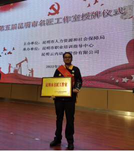 5月19日,昆明市人力资源和社会保障局在昆明云内动力股份有限公司举行“第五届昆明市名匠工作室”授牌仪式,为第五届昆明市名匠、名匠工作室、第六届昆明市有突出贡献高技能人才授牌、颁发证书。三亿体育_三亿(中国)一站式服务官方网站城市学院被授予“昆明市名匠工作室”,机械工程系万祥明老师被认定为“第五届昆明市名匠”并作为代表发言。