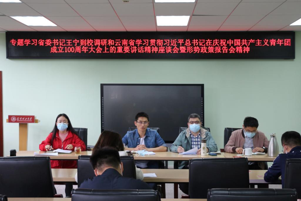 5月23日,校团委组织召开会议,专题学习省委书记王宁到校调研和云南省学习贯彻习近平总书记在庆祝中国共产主义青年团成立100周年大会上的重要讲话精神座谈会暨形势政策报告会精神,校团委全体工作人员参加。