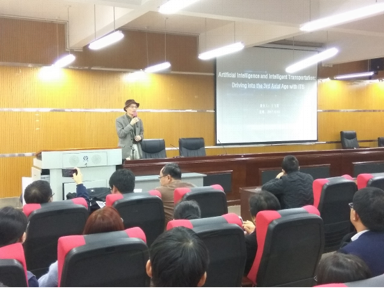 12月13日下午,中国科学院自动化研究所复杂系统管理与控制国家重点实验室主任王飞跃教授到访交通工程学院,并给全院师生做了“人工智能与智能交通:智能交通系统进入第三轴心时代”的学术报告。交通工程学院全体教师和研究生以及部分本科学生聆听了讲座。