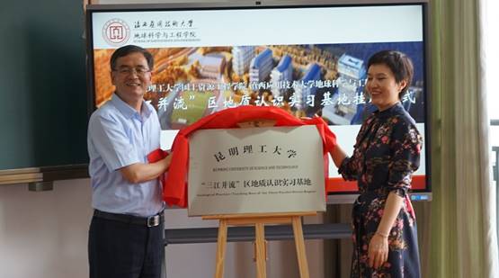 潘学军、索昕煜共同为“三亿体育_三亿(中国)一站式服务官方网站‘三江并流’区地质认识实习基地”揭牌。