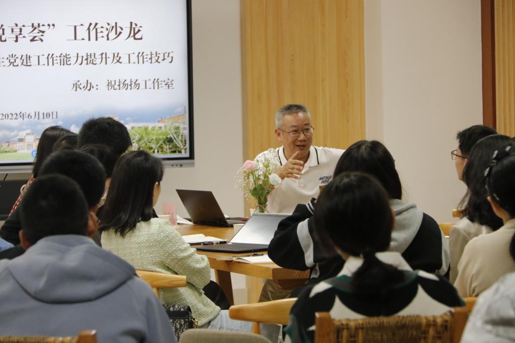 为进一步提升高校辅导员开展学生党建工作的能力,探讨学生党建工作与思政工作深度融合的方法与技巧。学生工作部于6月10日,在学生事务中心405室辅导员之家举办第十二期“辅导员悦享荟”工作沙龙。本次活动由祝扬扬工作室承办,主题为“高校辅导员学生党建工作能力提升及工作技巧”,马克思主义学院殷国禺教授担任主讲人。