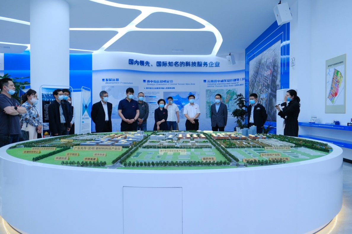 降富楼一行先后参观了云南滇中新区规划展览馆、临空产业园、中关村产业园,听取了园区相关人员对新区规划情况、电子程高科发展历程、园区建设情况、项目招商情况、以及企业对人才需求等情况的介绍,进一步了解了用人需求。
