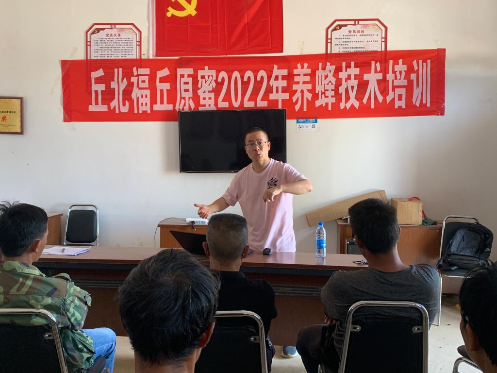 当天上午,郭军博士到双龙营光穴村活动室为附近几个村的十余位养蜂户进行了蜂群四季管理技术培训,针对蜂群的夏季管理及人工育王技术进行了重点讲解,并针对目前蜂群发展存在的问题进行了现场答疑。培训后,郭军博士还前往养蜂场调研蜂群受灾恢复情况,针对部分脱贫户的蜂群现状进行了现场指导。