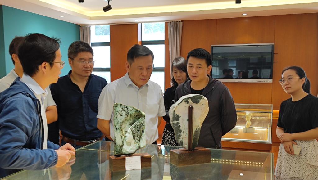 6月20日,校党委常委、副校长易健宏到材料学院展厅参观、指导宝石及材料工艺学系毕业设计暨师生作品展。