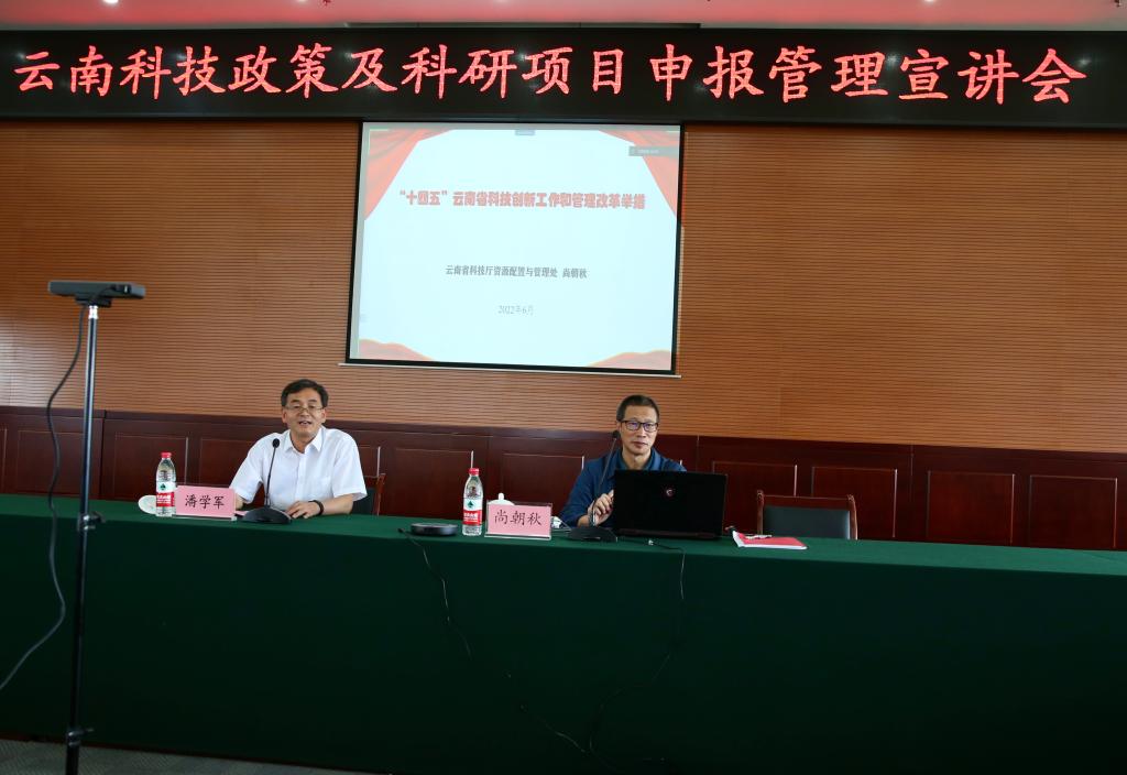 宣讲会上,云南省科技厅资配处处长尚朝秋结合云南省“十四五”科技创新规划和重点工作部署,对国家和云南省近期制定发布的科技创新政策、省科技计划项目管理办法等文件进行了解读。整场宣讲内容丰富,讲解深入浅出,有很强的实效性和针对性,受到参会人员的一致好评。
