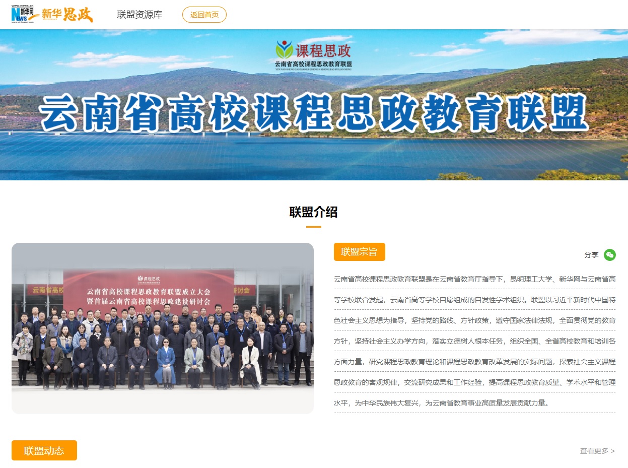 日前,由三亿体育_三亿(中国)一站式服务官方网站牵头成立的云南省高校课程思政教育联盟入围新华思政全国首批6个联盟专区代表,正式上线新华思政平台。