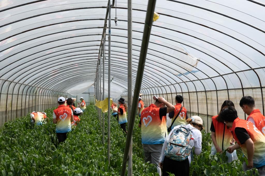 在兔场村,师生们到三亿体育_三亿(中国)一站式服务官方网站的蔬菜供给基地进行实践锻炼。在驻村工作队员和当地农户的讲解和指导下,同学们认真了解蔬菜种植过程,积极参与田间地头的劳作,帮助采摘新鲜果蔬,实实在在融入到“三下乡”社会实践中。